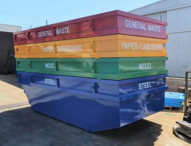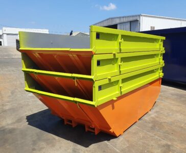 Apollo Fabrications Skip bins are usually found at mining or building sites, which are used to store and transport excess waste and recyclables. Our Skip Bins are 100% manufactured to suit every customer’s specific size and requirements. Our Skip Bins sizes range anywhere from 2m³ up to 15m³.